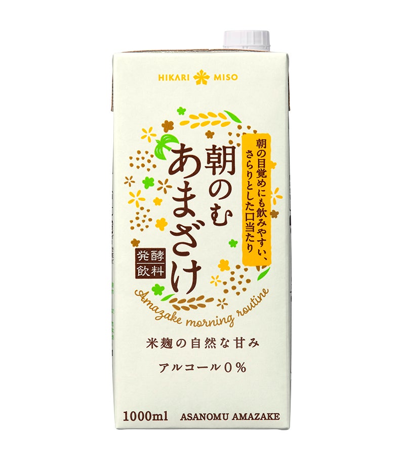 甘い飲み物で、朝から気持ちよく活動していただくために、後味が軽くすっきりとした味わいに仕上げました。自社で製造した米麹の自然な甘みや、さらりとした口当たりも特長です。『朝のむあまざけ』はアルコール0%のため、寝起きや朝食時、健康や美容のための栄養補給として、お子様もご一緒にご家族皆さまでお楽しみいただけます。毎朝飲みたい方や、家族で飲む方など飲用頻度が多い方にもたっぷりと楽しんでいただける大容量の1000mlサイズでご用意しています。