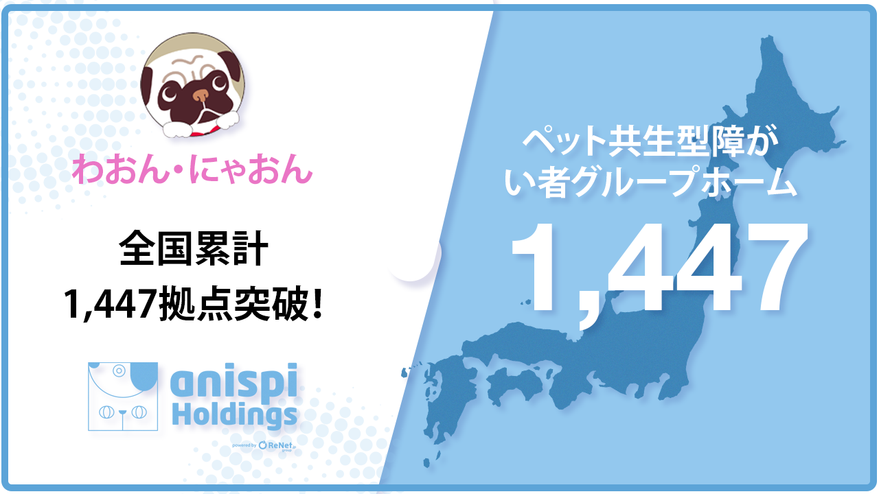 ペット共生型障がい者グループホーム「わおん」「にゃおん」全国累計1,447拠点へ!