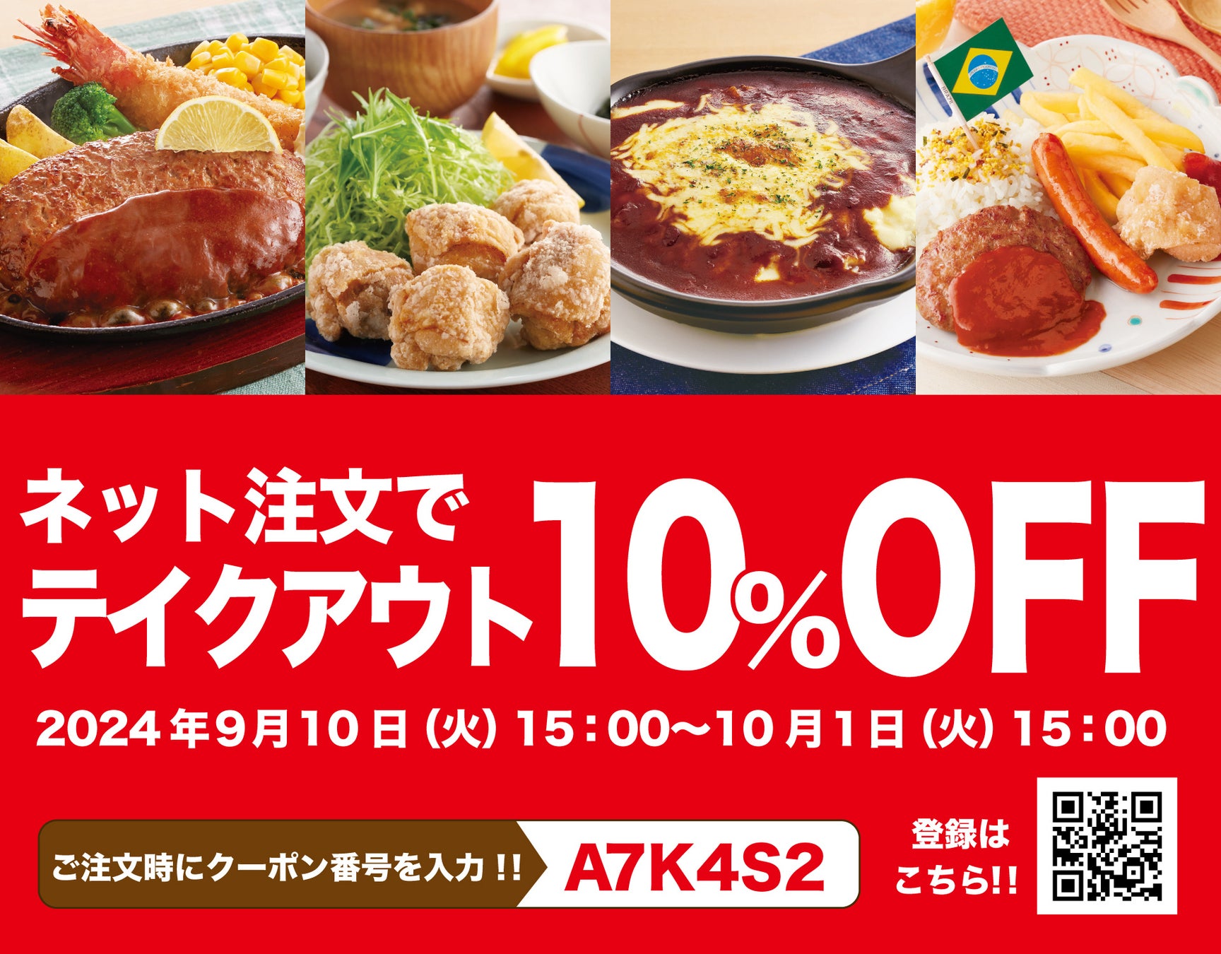 ファミリーレストランチェーン「ジョイフル」を展開する株式会社ジョイフル(本社:大分県大分市 代表取締役社長:穴見くるみ)は、2024年9月10日(火)15時より期間限定で、ジョイフルのネット注文からテイクアウトをご利用していただいたお客様を対象に、お買い上げ合計金額が10%OFFとなるキャンペーンを開催します。