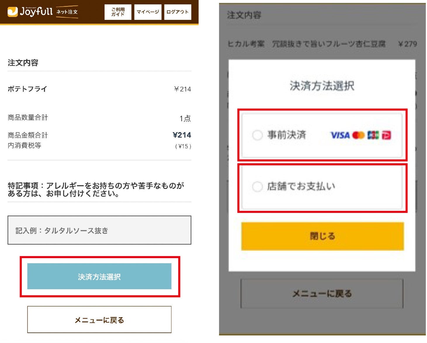 詳細はジョイフルネット注文ページ内の「ご利用ガイド」
