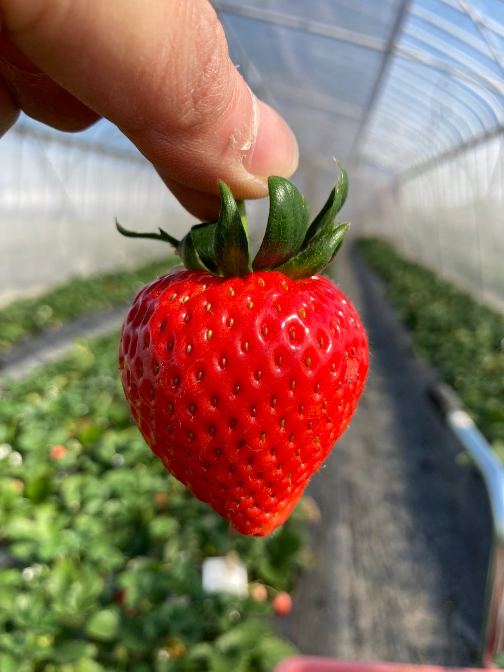 香りが高く、ベリー(ブドウ)のような甘みと酸味が合わさって深みのある味わいでした。ひと味違ういちごを味わえました。