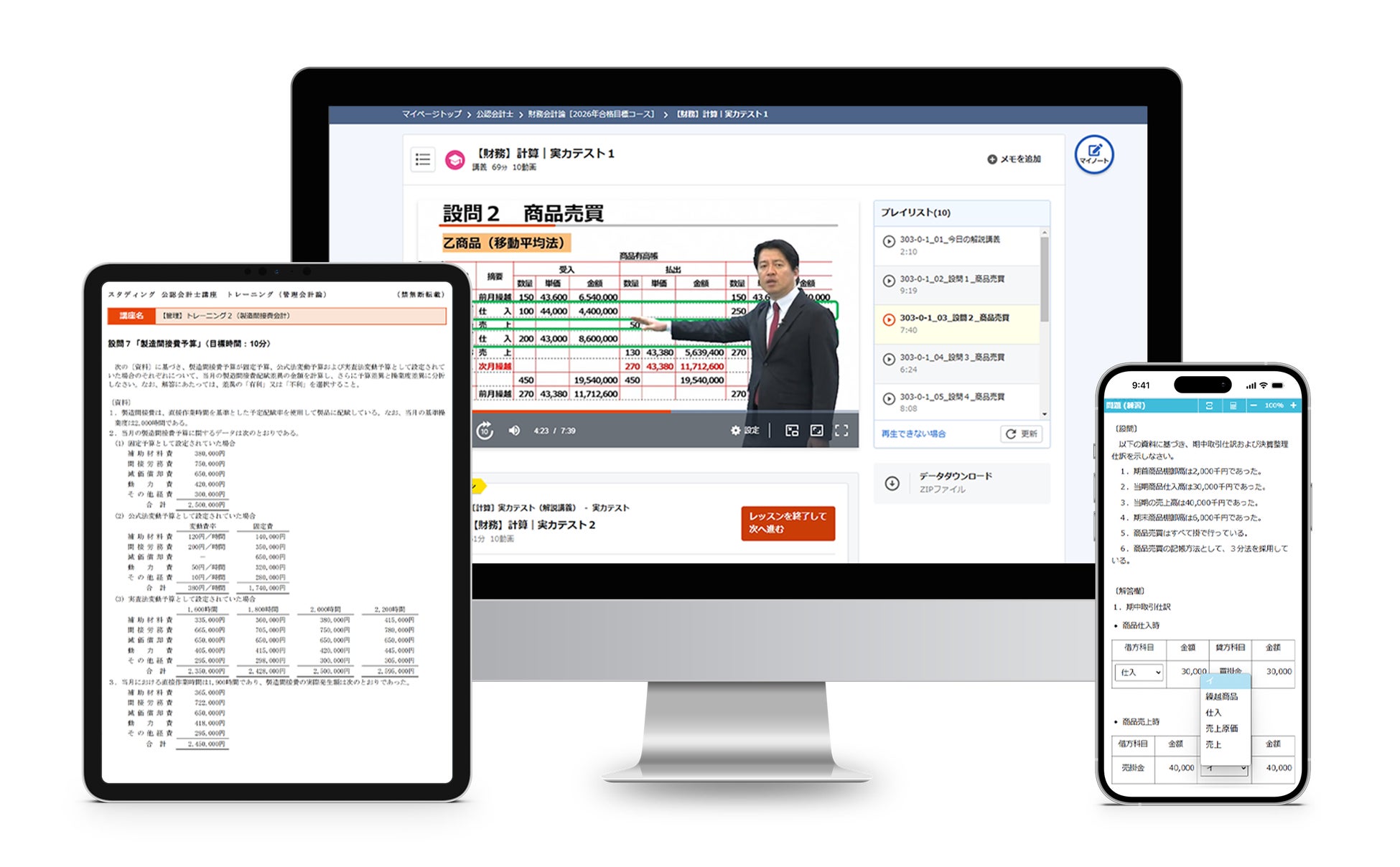 分かりやすさや見やすさにこだわった動画講義、さらにスマートフォンでも取り組める確認問題から本格的な答練まで幅広い問題をご用意。ユーザーは講義と問題を使って着実に力をつけることができます。
