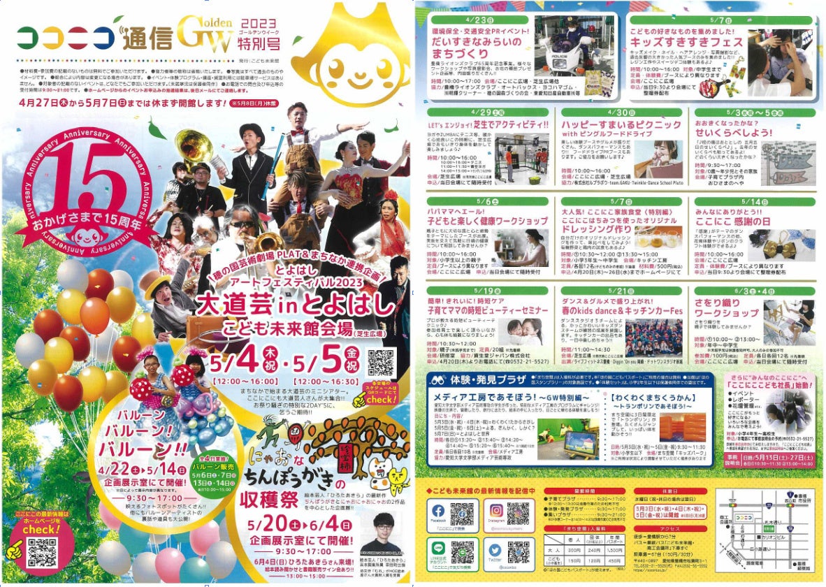 5月4日、5日は「大道芸inとよはし」こども未来館会場として大道芸人が来場!その他にも「バルーン バルーン! バルーン!!」イベントをはじめゴールデンウィーク中は子どもが楽しめるたくさんのイベントを予定しています。