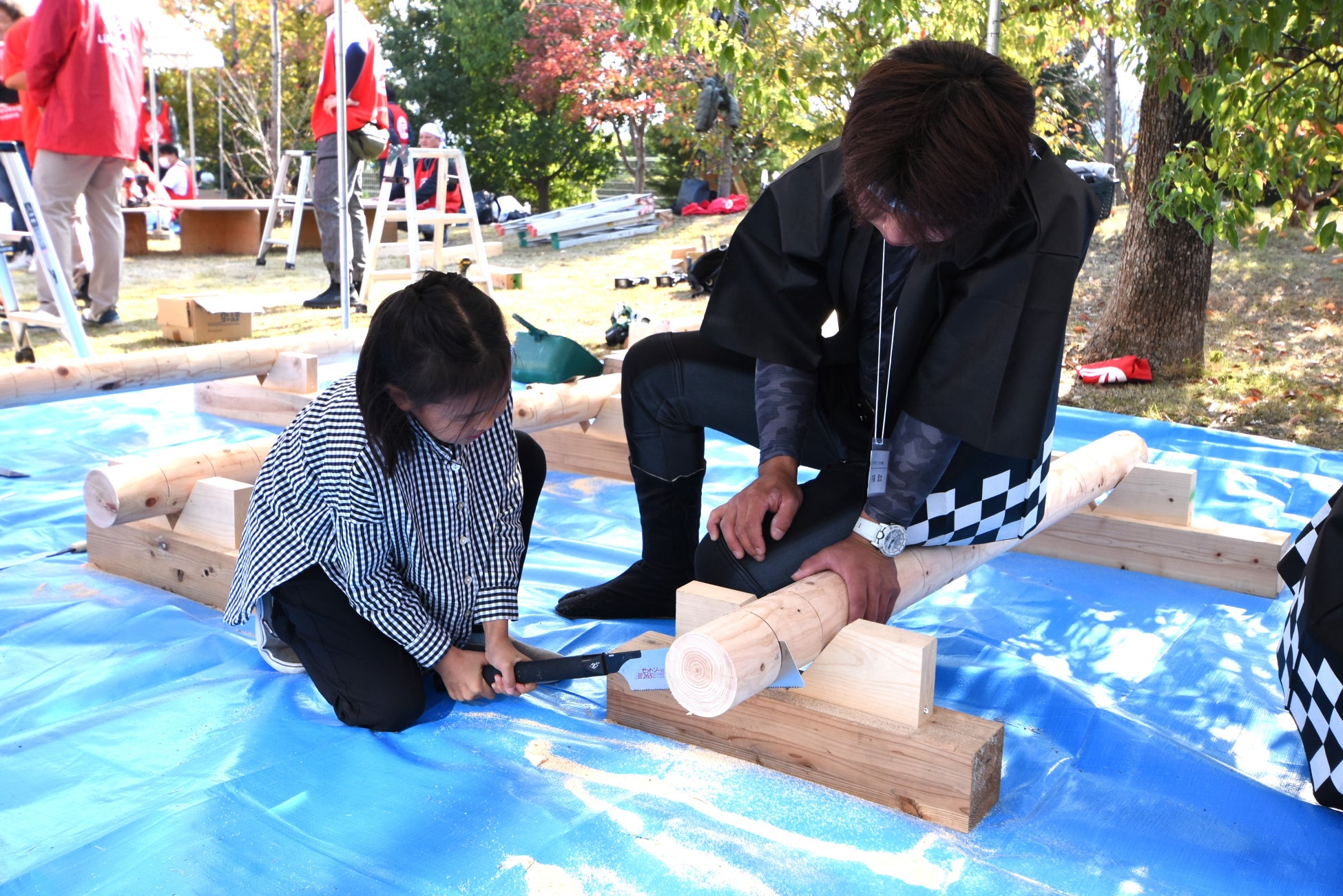 当社岡山南展示場にて開催したおかやま職人まつりでは、定番の丸太切り体験、上棟体験の木材に今回、岡山県産材を用いることで、地産地消を通して脱炭素社会(カーボンニュートラル)の実現に貢献できるイベントになりました。