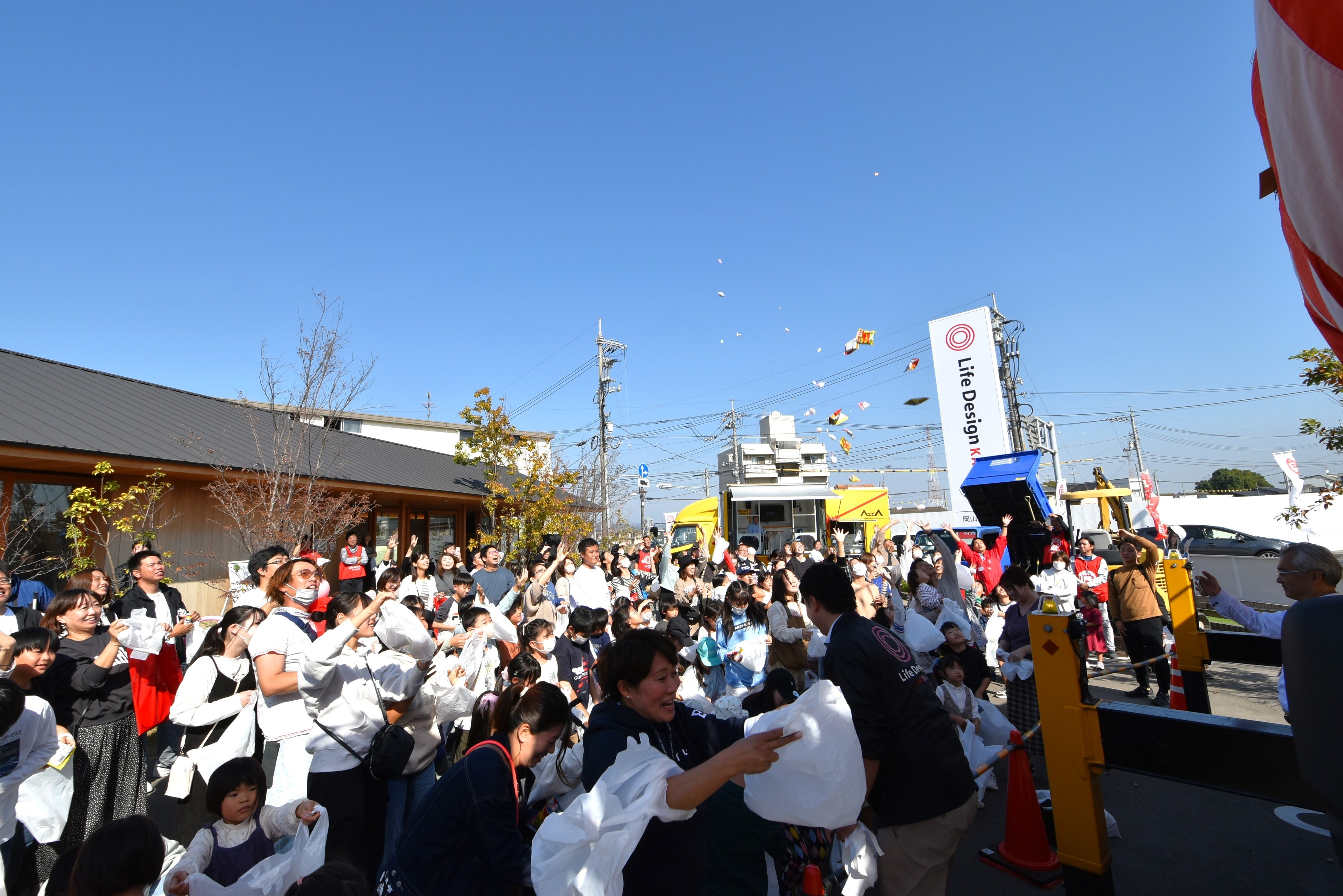 〈もち投げ:おかやま職人まつり(当社岡山南展示場)〉