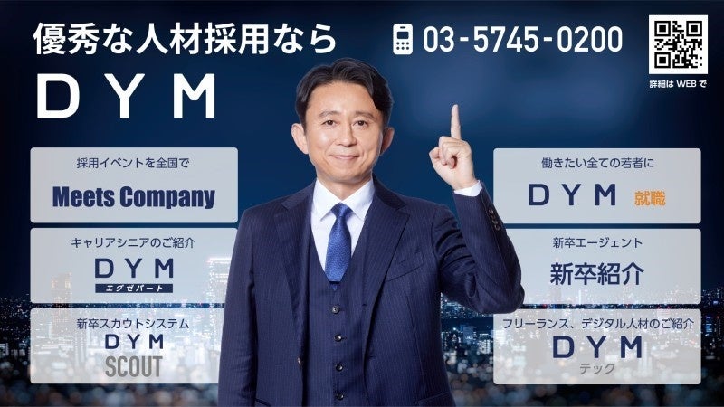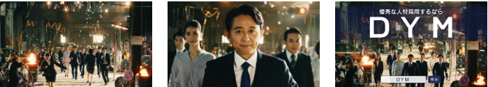 有吉さんから「仕事を勝ち取る難しさを、俺たちは知っている。だからDYMは働きたい君が進むべき道を切り拓いていく」と伝え、DYMの就職支援サービス「新卒採用」「Meets Company」「DYMスカウト」「DYM就職」「エグゼパート」「DYMテック」の紹介をします。最後、「勝ち取れ」と画面の前にいる人々に向けて発する、有吉さんの表情が印象的なCMになっています。