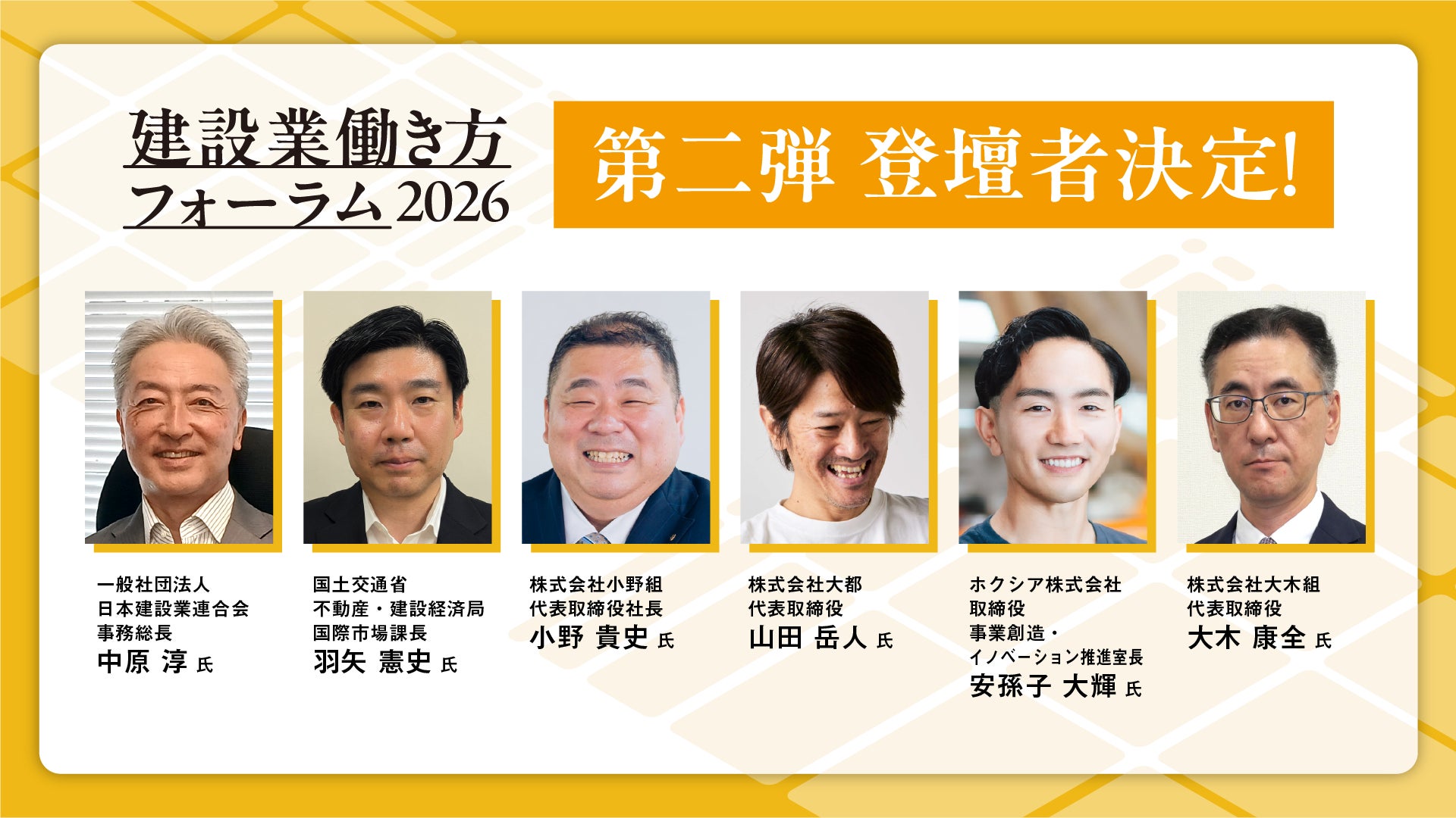 【登壇者第二弾発表】建設業界のリーダーが一堂に集結する「建設業働き方フォーラム2026」