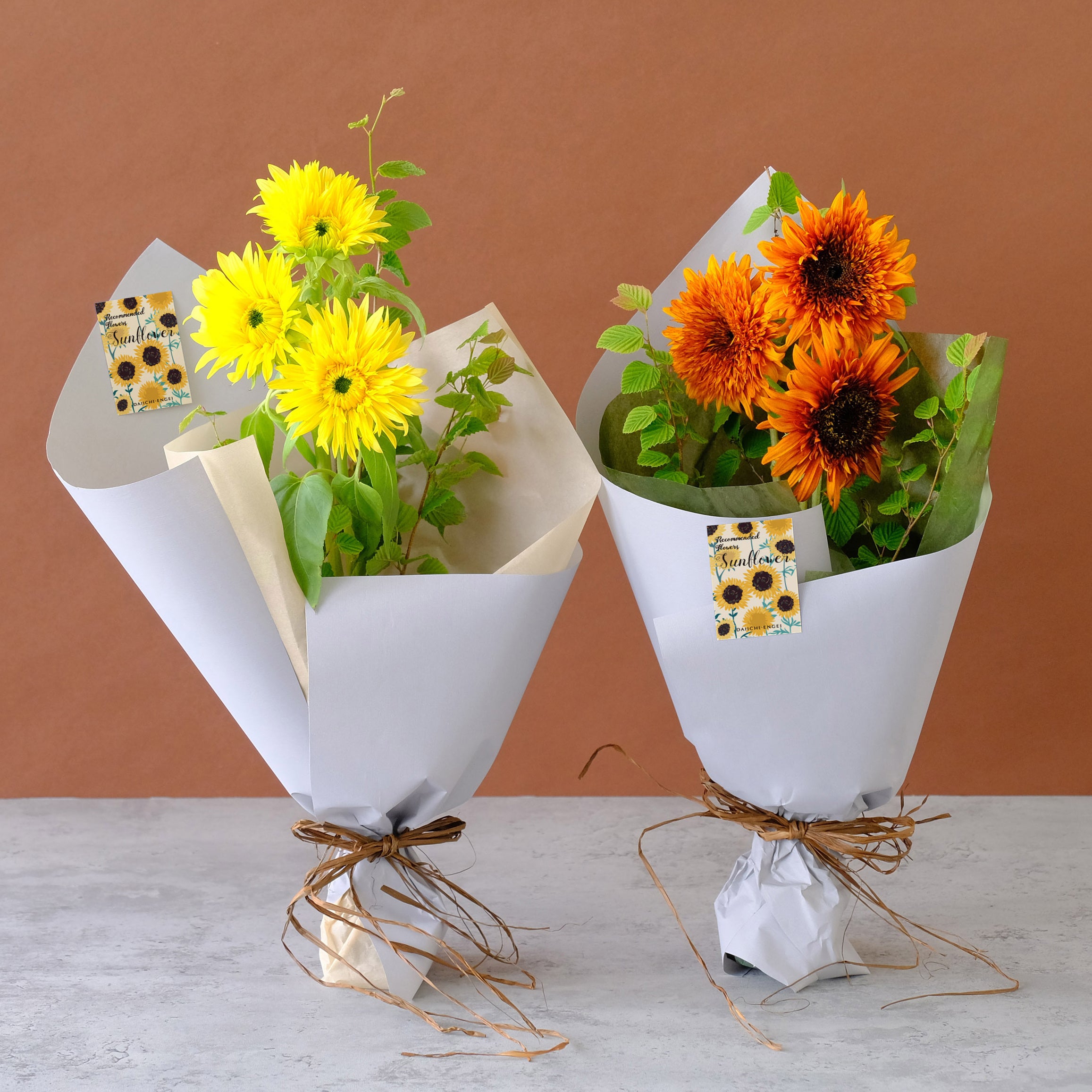 カスミソウとヒマワリ、まったく個性の違う花はご自分へのプレゼントにもおすすめ!