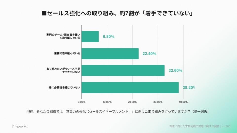 ④セールス強化への取り組み、約7割が「具体的な施策に着手できていない」現状