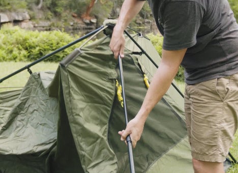 丈夫で軽いフレームの採用で、一人でも簡単に設営・撤収が可能。付属のキャノピーポールを使用すれば、前室スペースを有効活用できます。