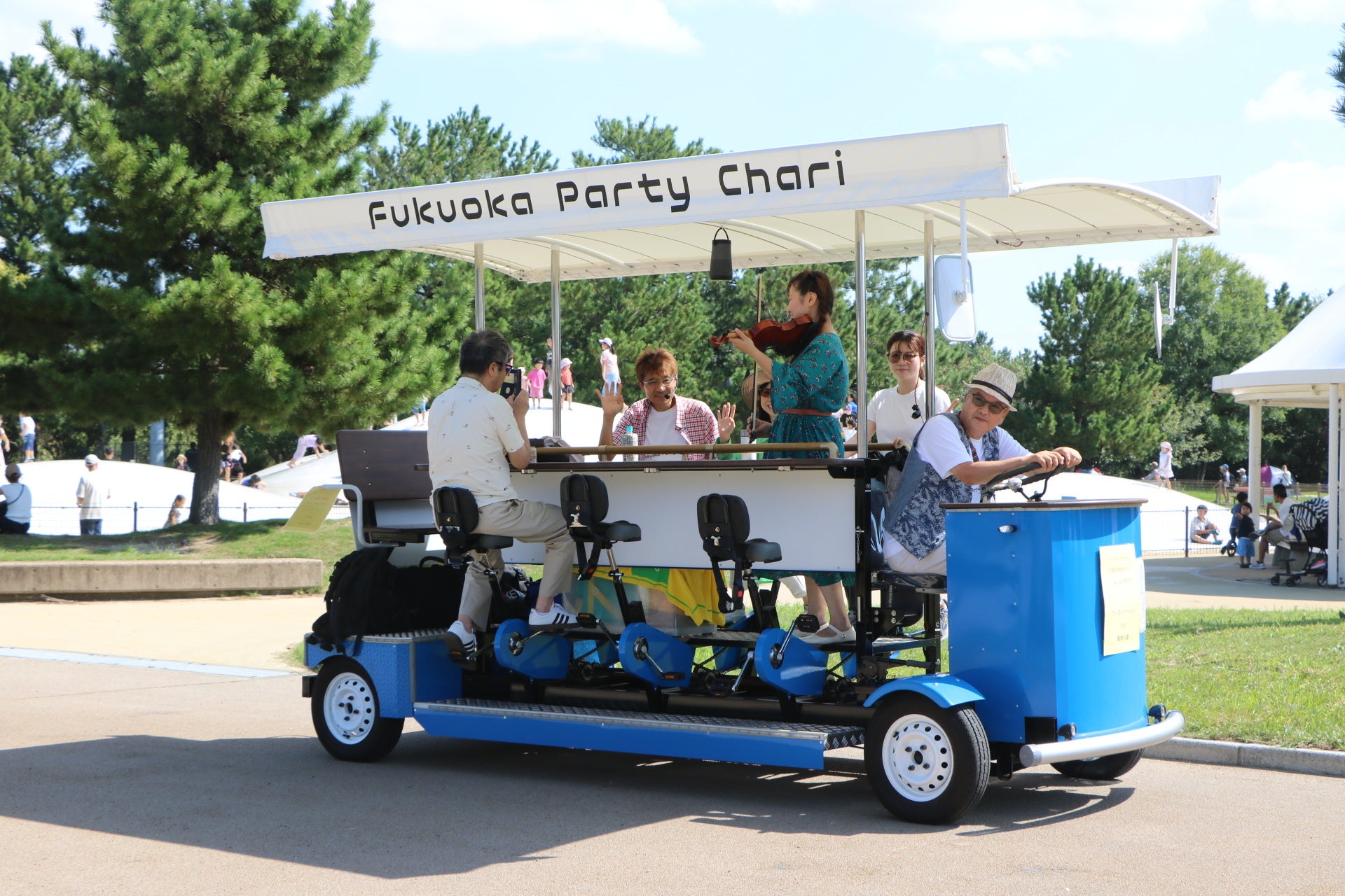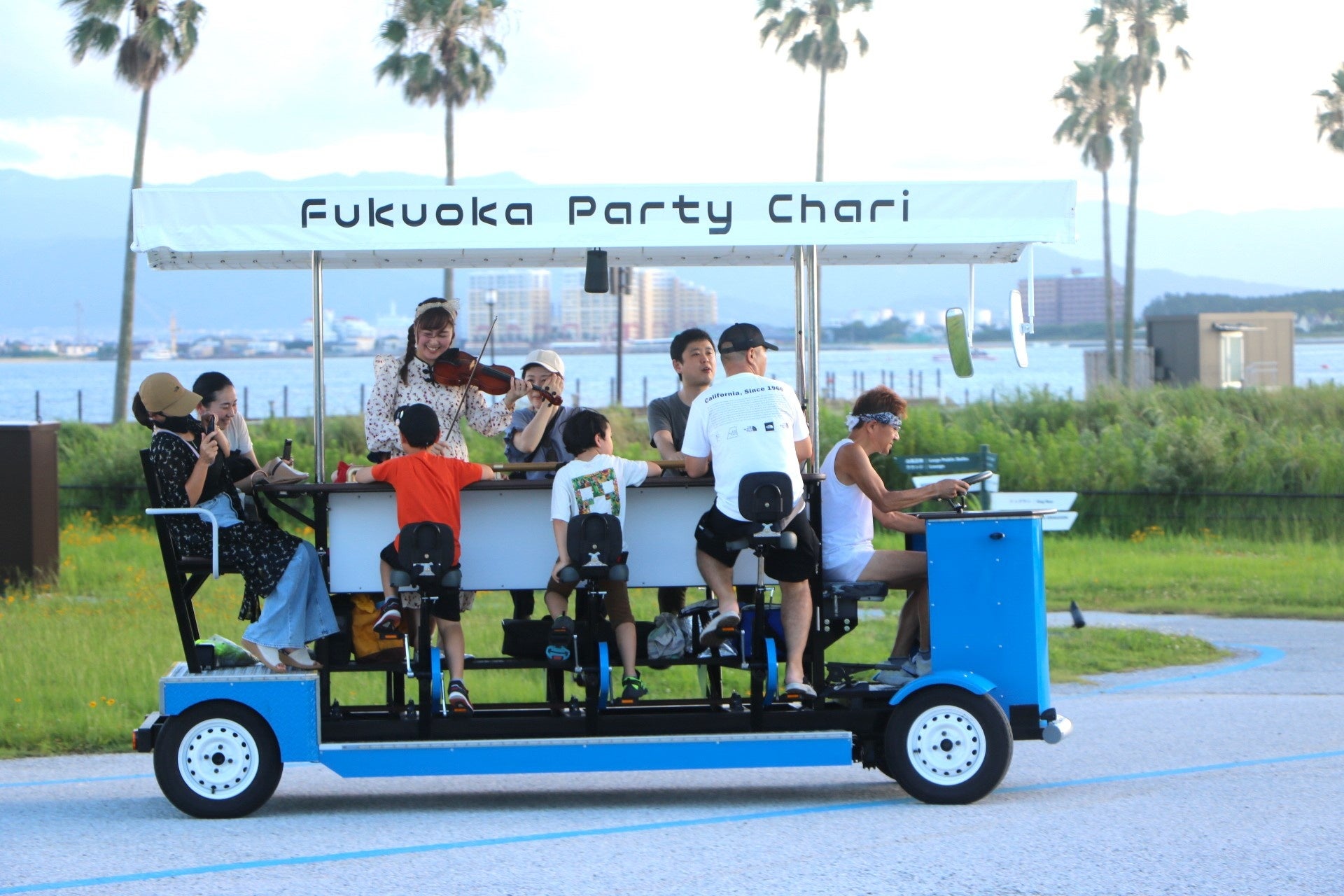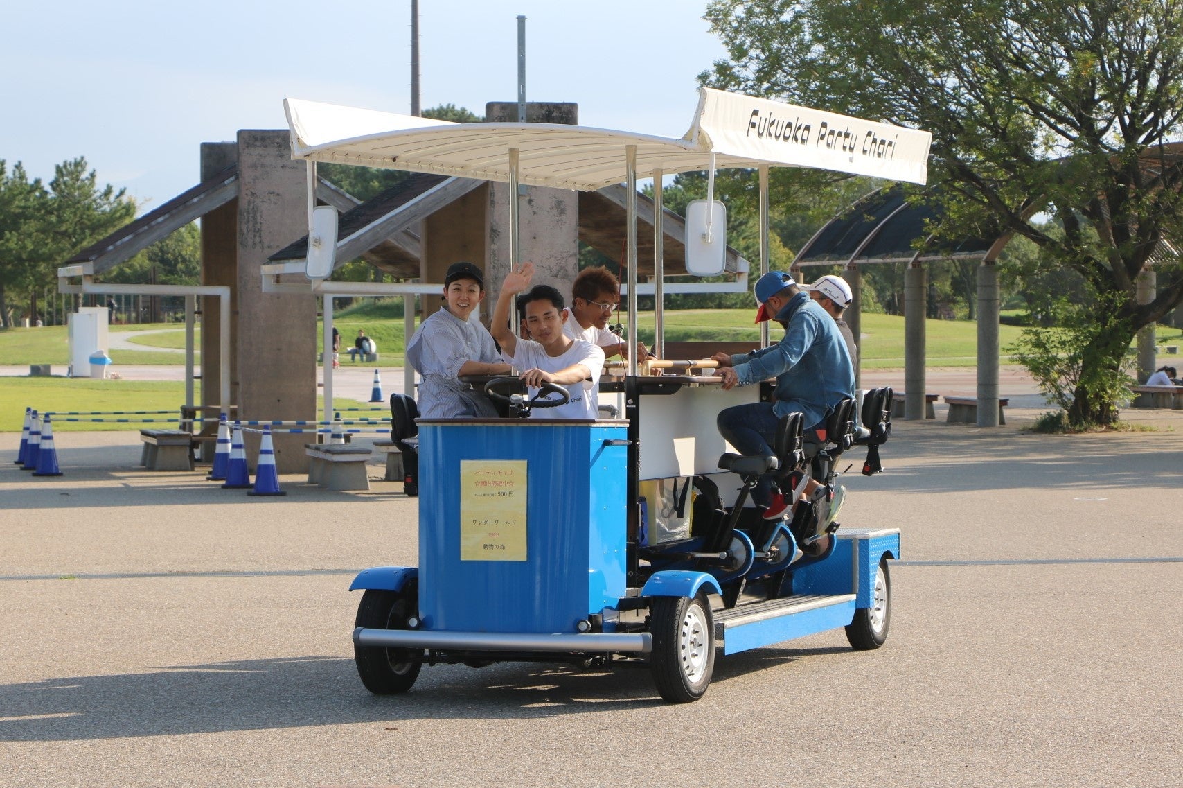 この秋、国営海の中道海浜公園では、新感覚の乗り物「福岡パーティチャリ」を期間限定で初めて運行しています!