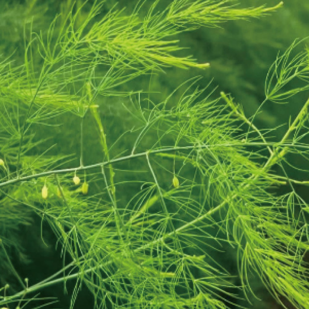太陽の光をたっぷり浴びて育ったアスパラガスは、ビタミンや食物繊維、鉄分などを豊富に含み、強い身体をつくる野菜のひとつです。またアミノ酸の一種であるアスパラギン酸は、アスパラガスに含まれていることがその名の由来です。長沼町の押谷ファームさんが育てるアスパラガスは、根元までみずみずしく甘みが強いのが特長。ドライパウダーには、次のシーズンに備えて生えてくる、ルチンが豊富といわれている擬葉をいただきました。