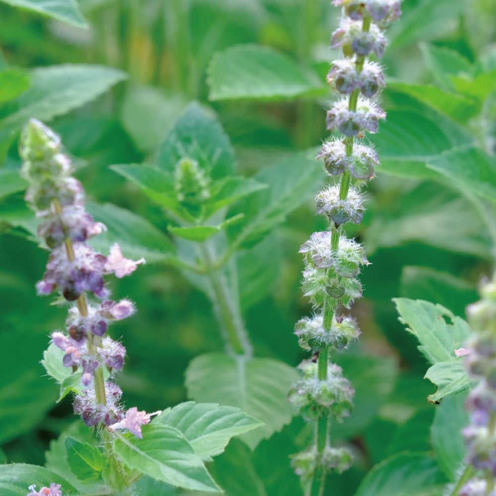 ホーリーバジルは、さまざまなストレスに対抗する力をサポートするといわれています。数ある品種のうち、SHIROではカプーアトゥルシーを使っており、香りが甘く芳醇で、味はミントのような爽快感にピリッとした刺激も感じられます。素材を育てているのは、農薬を使わずに無化学肥料で野菜づくりに取り組む、ひなた農園さん。自然と向き合いながら食べると誰もが笑顔になる野菜をつくり、芳醇な香りをもつホーリーバジルは、4年にわたり旬シリーズでもお世話になっています。