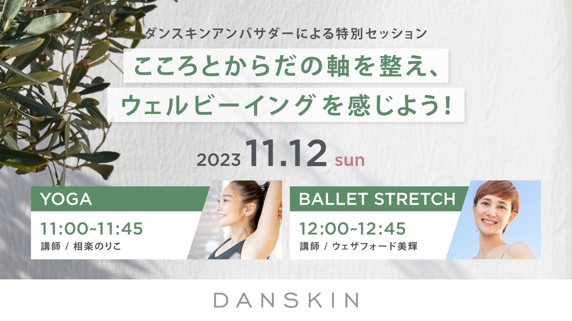 こころとからだの相互作用を様々な活動を通じて伝えているダンスキン。ブランドアンバサダーと一緒に、YOGAやBALLETをベースにしたユニークなセッションを通じて、心身を軽やかに整えよう。