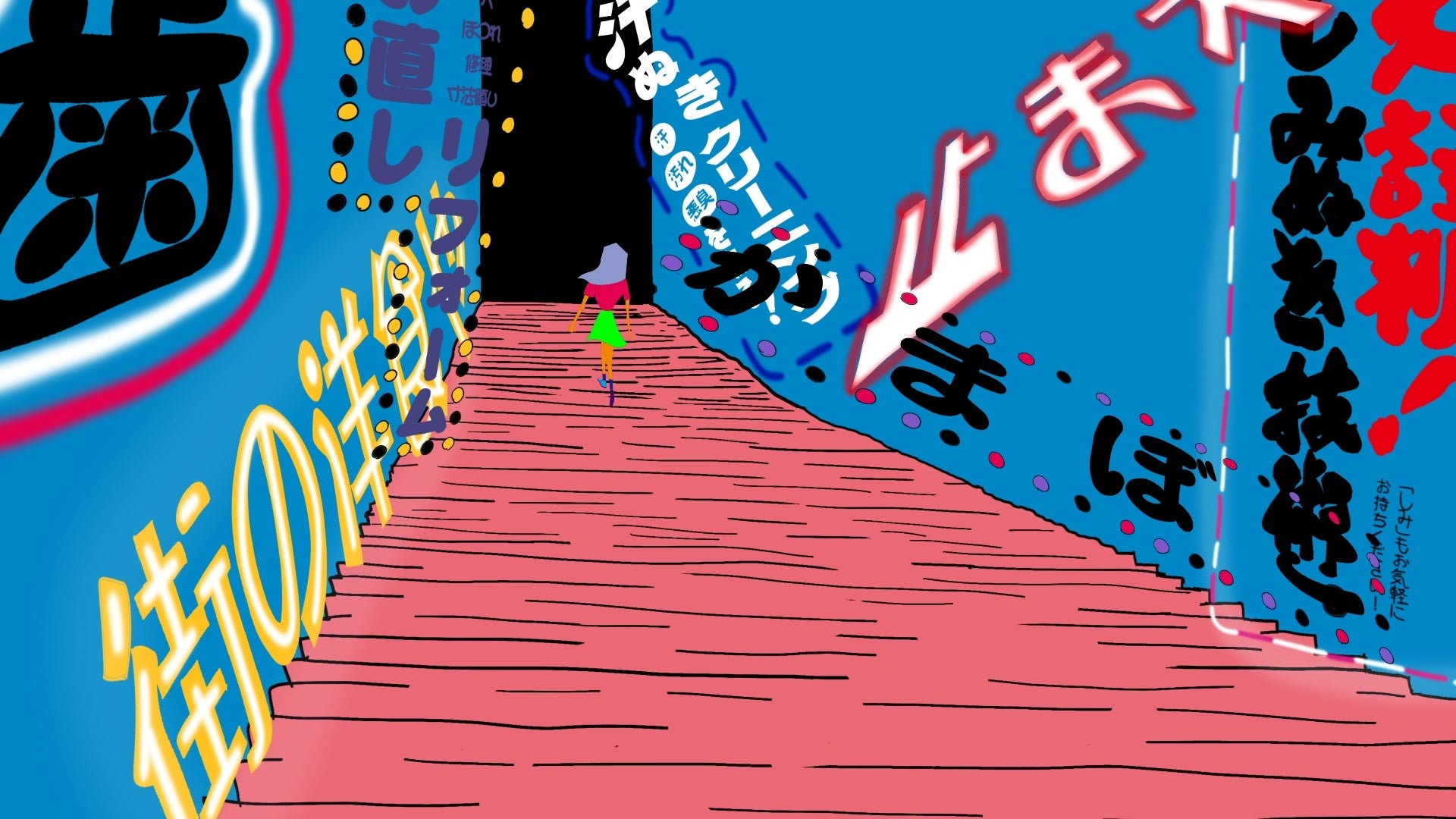 ある日失恋しショックを受けた私は、歩くと数時間かかる家まで酒を飲みながら徒歩で帰った。酒と街に飲まれながらも歩いて帰る様を、落語の技法の「道中付け」とポップカルチャーを融合して描く。