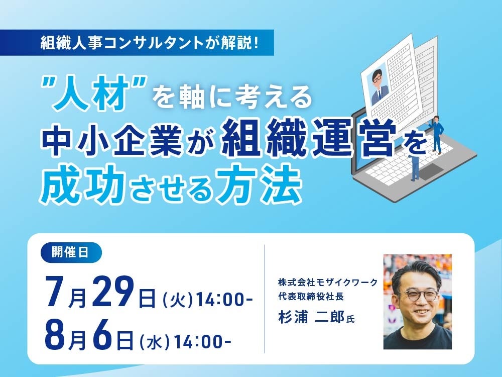 【無料オンラインセミナー】"人材" を軸に考える中小企業が組織運営を成功させる方法 (7月29日・8月6日開催)