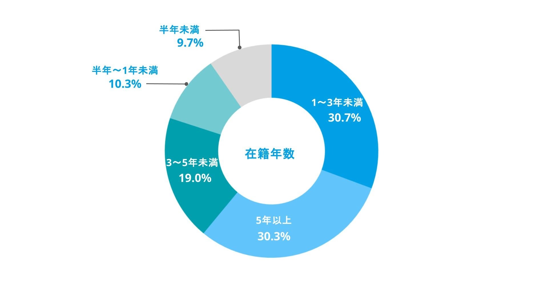 前職での在籍年数を見ると、「1〜3年未満(30.7%)」「5年以上(30.3%)」がほぼ同水準となりました。