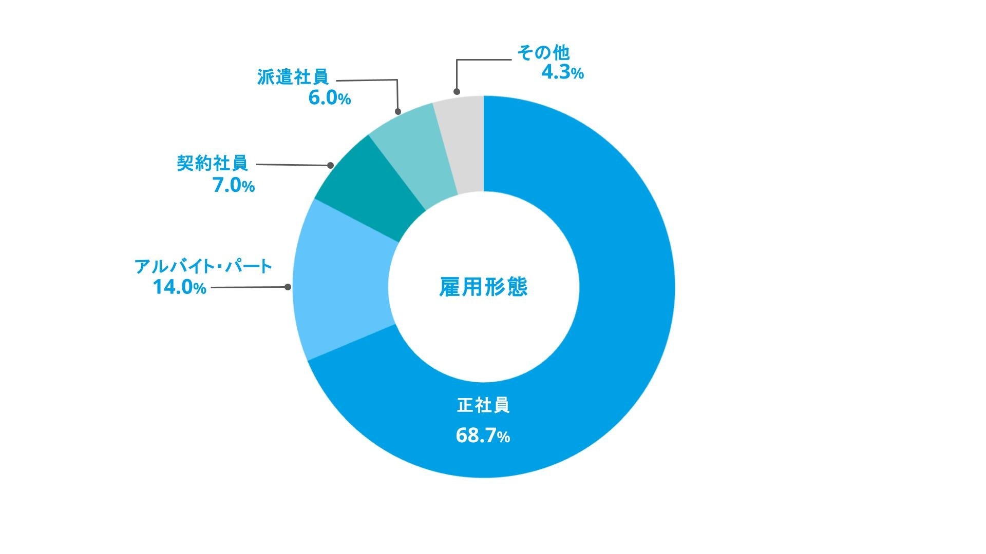 続いて「アルバイト・パート(14.0%)」「契約社員(7.0%)」「派遣社員(6.0%)」が続きます。