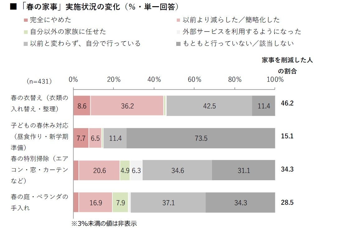 (※2)家事を削減した人=「完全にやめた」「以前より減らした/簡略化した」「自分以外の家族に任せた」「外部サービス(外注・購入など)を利用するようになった」の合計