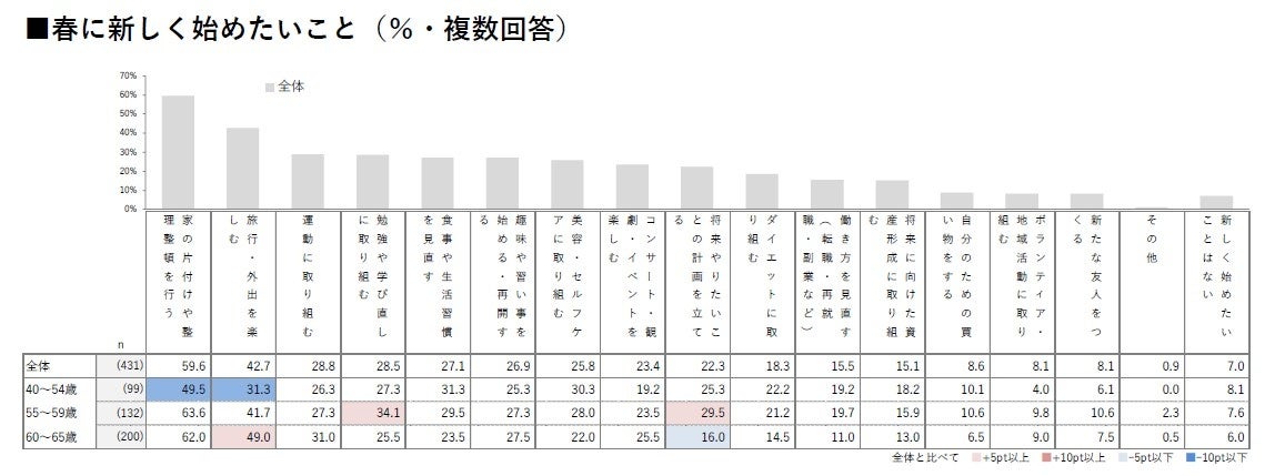 【HALMEK up×生きかた上手研究所 共同調査】ミドルエイジ女性の「春の節目」に関する意識・実態調査春は"再スタート"の季節!55~59歳の約半数が「何かを新しく始めたい」と回答