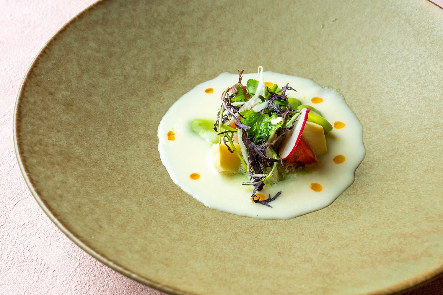 蛤とホワイトアスパラのスープ仕立て 春野菜とともに 〜甘き苦き青春〜