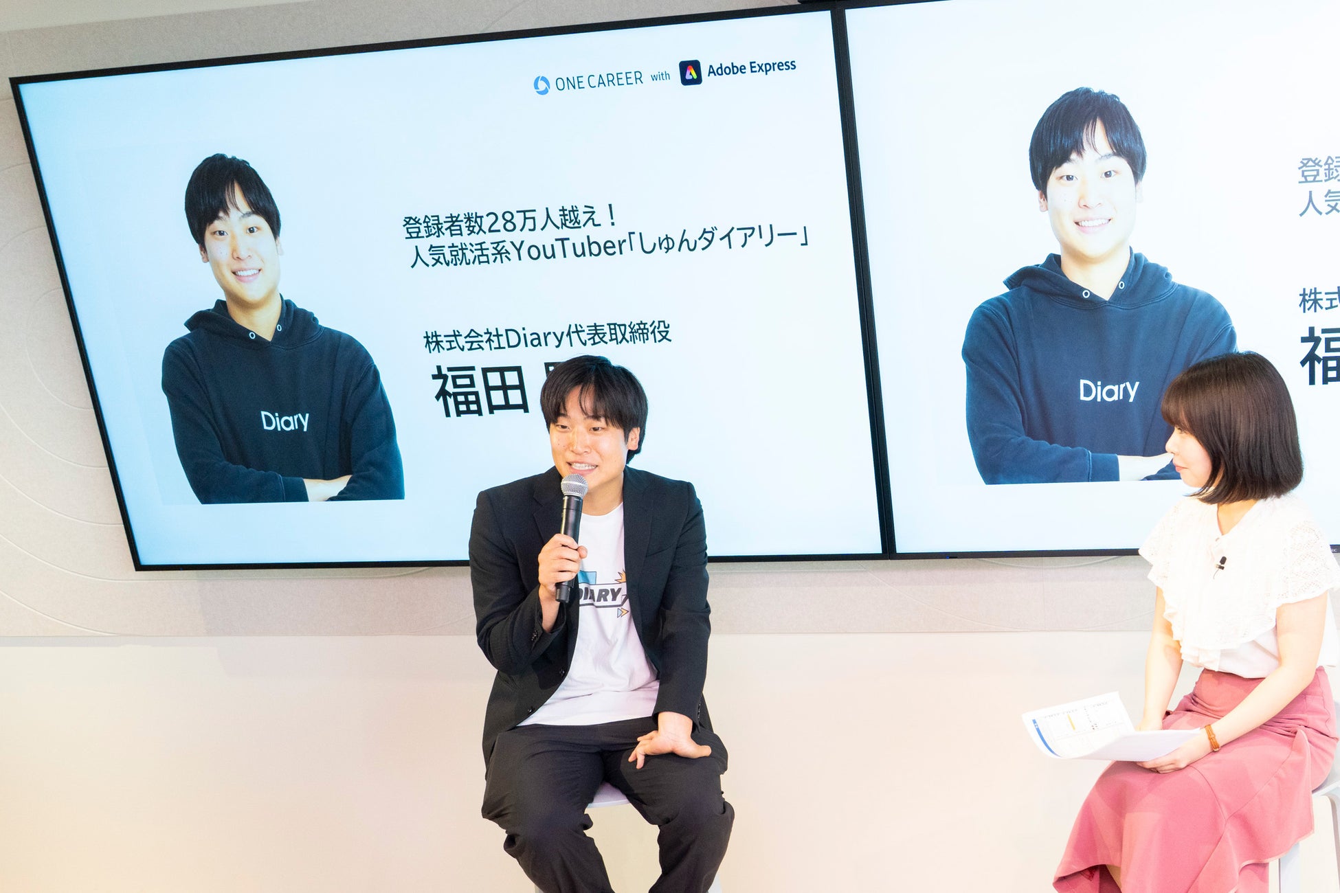 セミナーには、チャンネル登録者数28万人を超える人気就活系YouTuber「しゅんダイアリー」氏もゲストとして登場。自身の就活体験や多くの就活生との対話を通じて感じた“就活における行動の重要性”について語り、自分らしさは行動から見えてくることをアドバイスしていました。