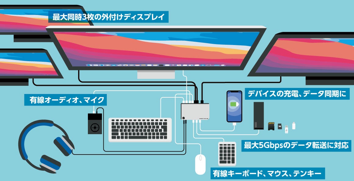 MacBook ProやiMac、Windows PCなど機種を問わず使える箱型ドッキングステーション