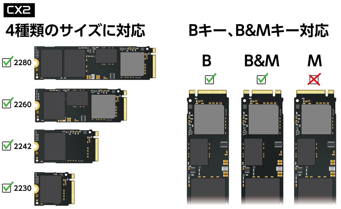 - 入れ替え可能なSSDに対応(CX2のみ)。