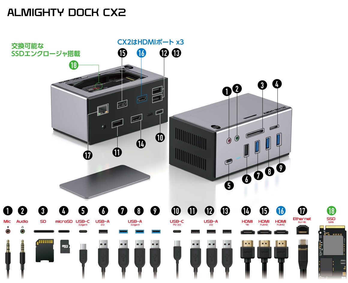 - 交換可能なSSDエンクロージャ(ALMIGHTY DOCK CX2のみ)
