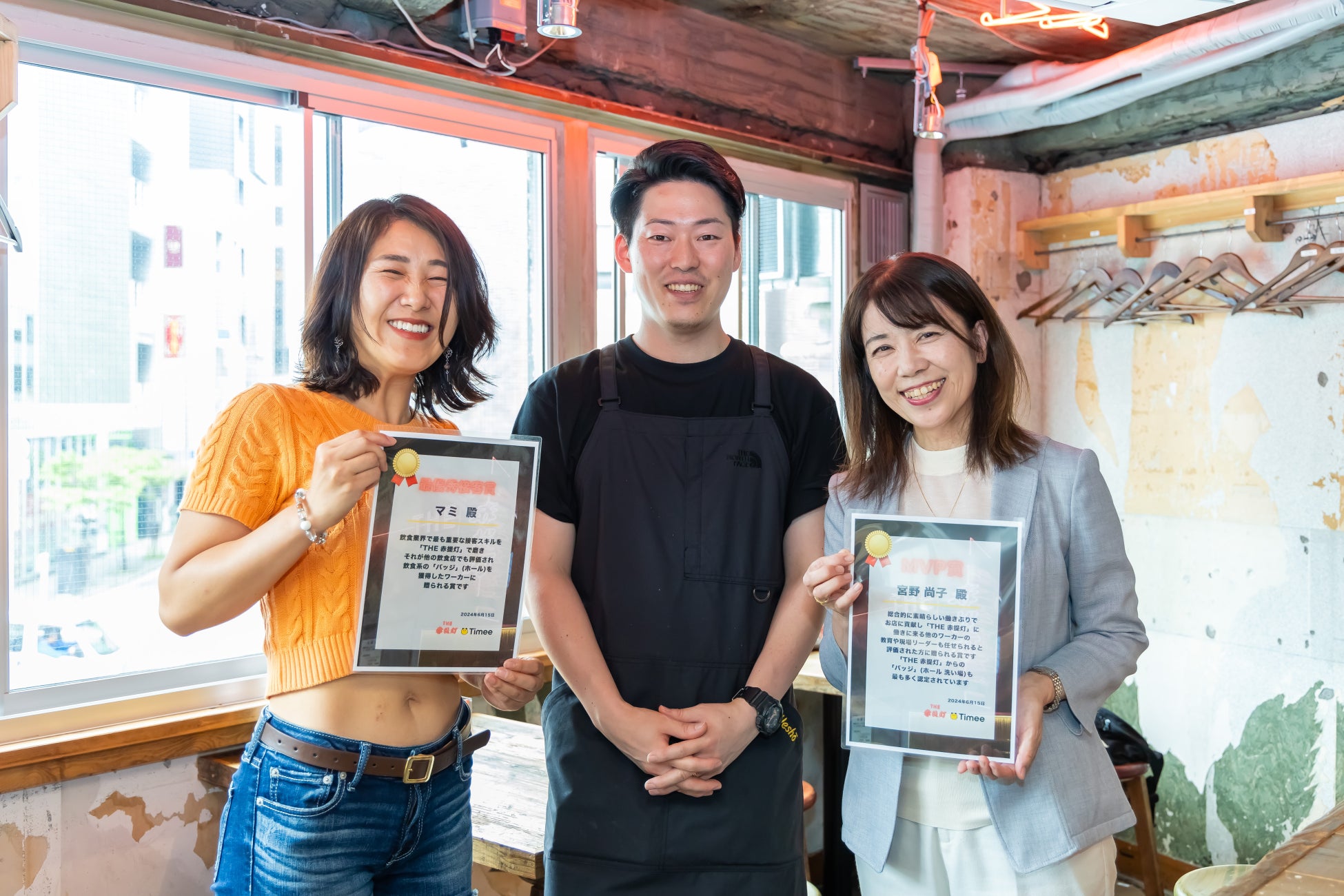 受賞者コメント:「THE 赤提灯」で働くことで私自身が元気をもらっていたので、このような賞をいただけてとても嬉しいです。「THE 赤提灯」のお客様は皆さんとてもあたたかいので、楽しく接客をさせていただきました。ここで学んだ接客の基礎が、本業や他の飲食店で働く時にも活かされていると思います。「THE 赤提灯」や他の飲食店バッジを認定いただけたことは、自信になり、次に活かそうとモチベーションが上がりました!これからもよろしくお願いいたします。