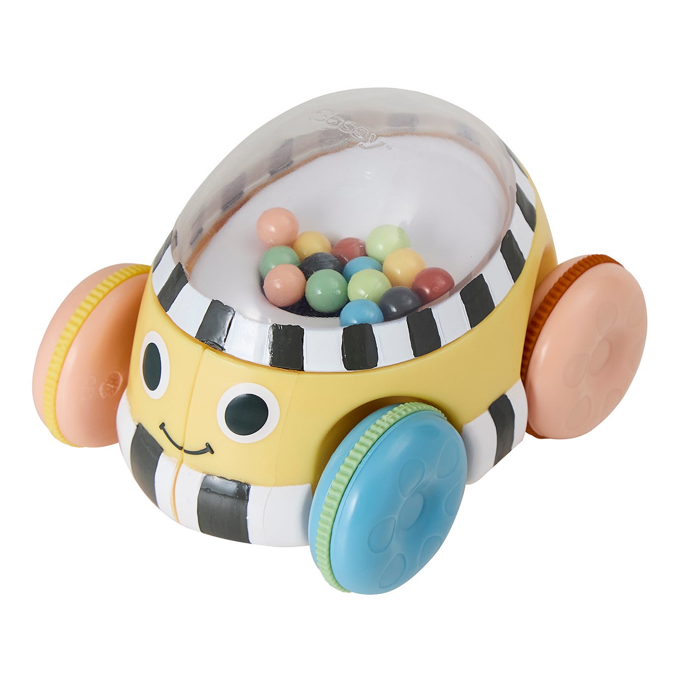 後ろに引いて手を離すと、トコトコ走るプルバックカー。車体が走るたび、中のカラフルなビーズがポップコーンのようにポンポンと弾けて、目でも楽しい!初めての車遊びにぴったりのおもちゃです。