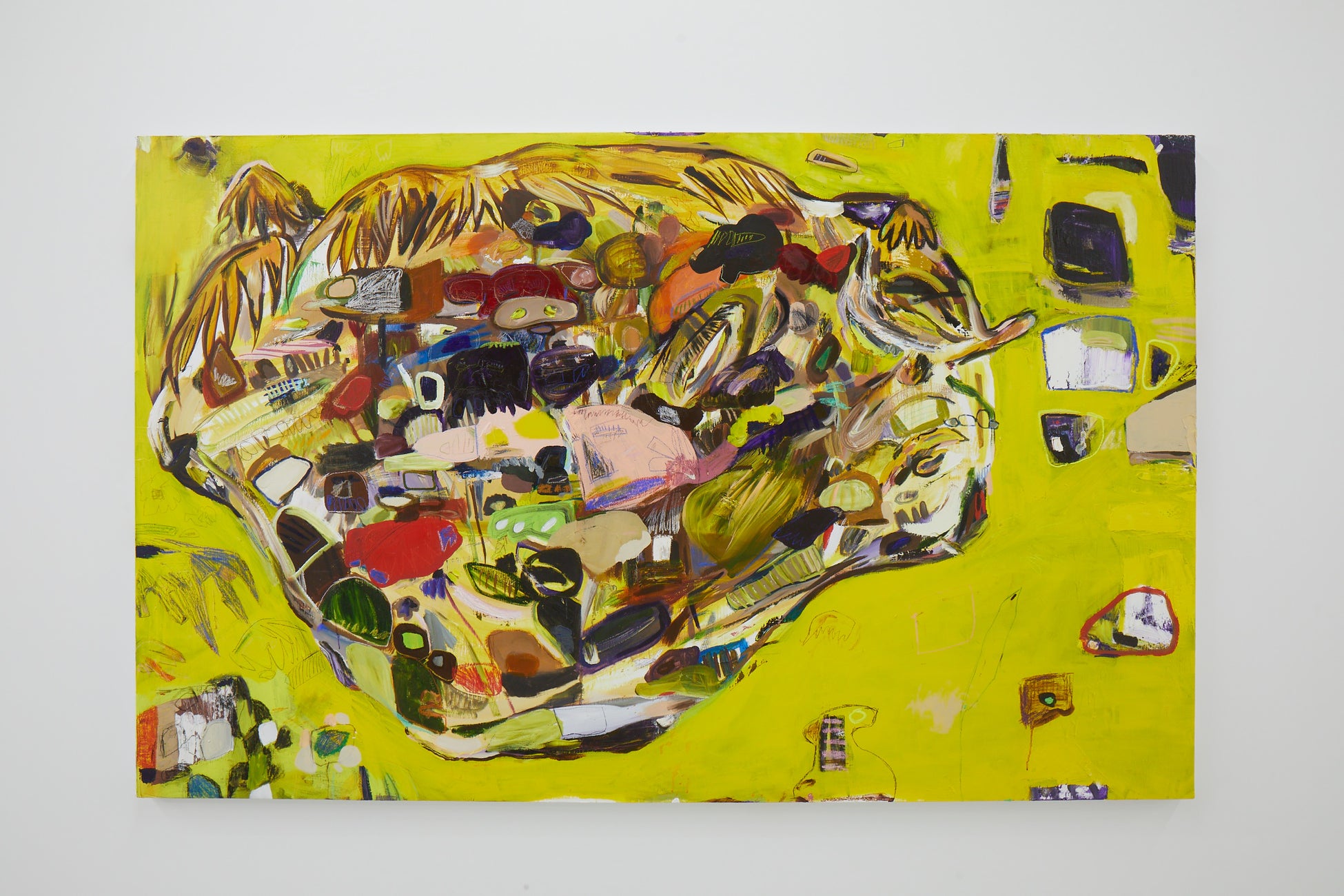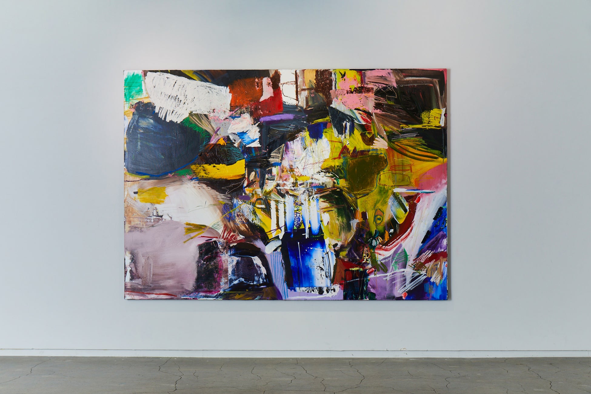 キャンバスには色がぶつかり、形が重なり、秩序と混乱がせめぎ合っています。
