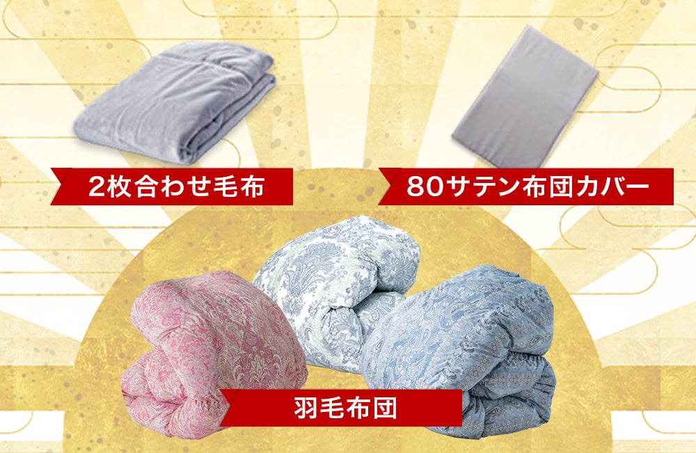 今年は「梅」「竹」「松」「特」「福」の5種類の羽毛布団に加え、