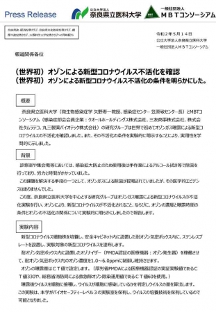 ※1.【プレスリリース】5/14、世界で初めてオゾンによる新型コロナウイルスの検証レポート