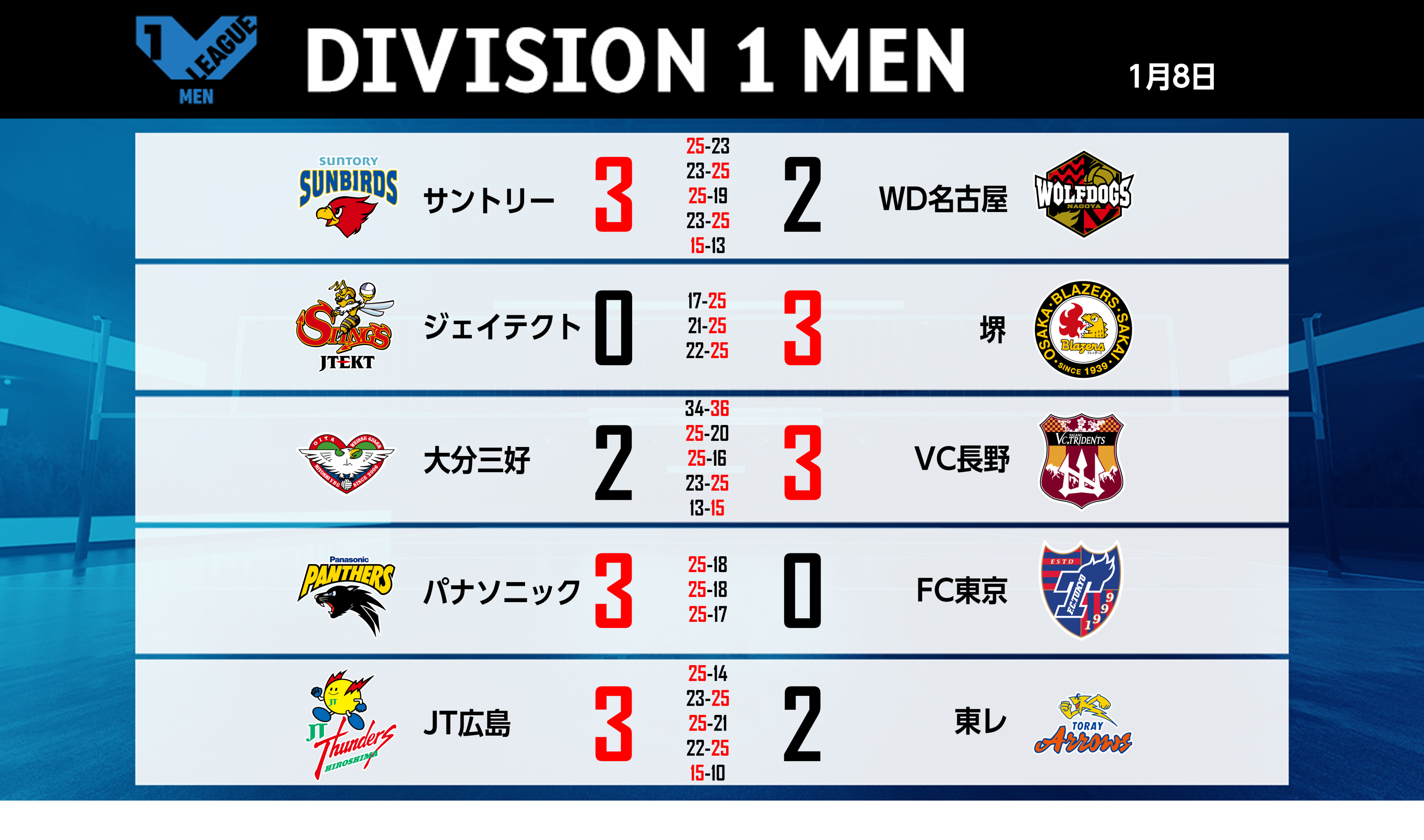 【バレー/Vリーグ】JTが男女ともにホーム勝利!VC長野はフルセットの末、今季初勝利!