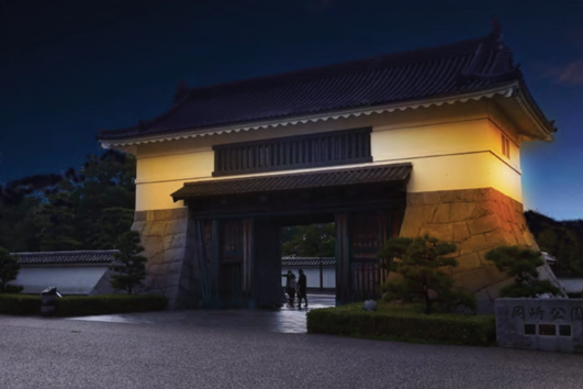 ・岡崎城大手門のライトアップ、インタラクティブな体験型プロジェクションマッピング