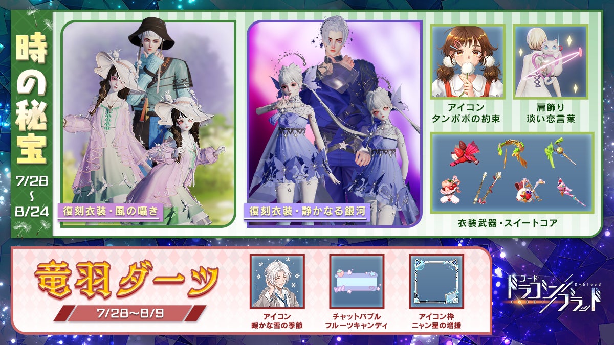 本日は、新しい「美しき夏」の情報、そして「時の秘宝」、「竜羽ダーツ」などの新コンテンツ情報を一挙ご紹介します。プレイヤーの皆さん、ぜひお見逃しなく!