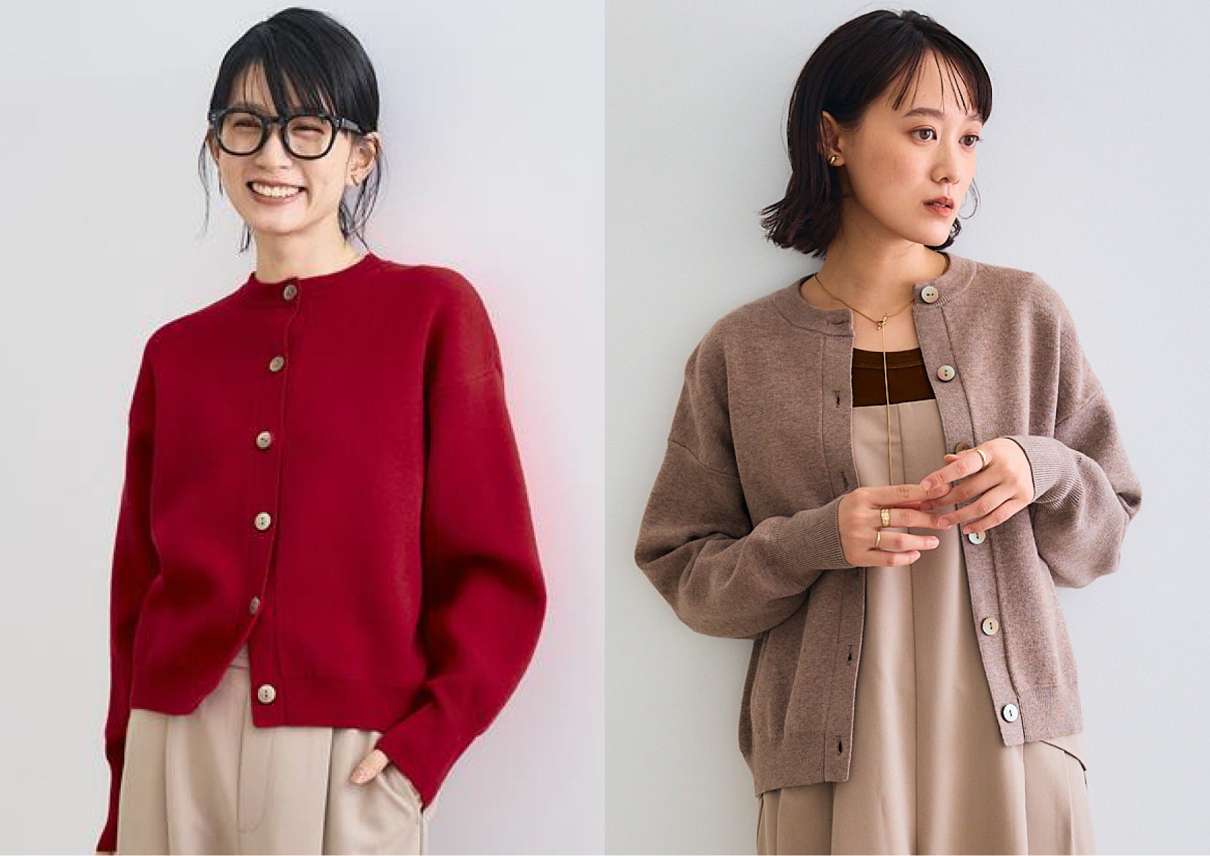 モチモチした弾力のある素材感で着心地抜群。ボタンを閉めればトップスに、ボタンを開ければ羽織としても活躍する万能カーディガンです。コンパクトなシルエットながらも体型をひろわない上品なシルエットが多くのファンから支持されているポイントです。