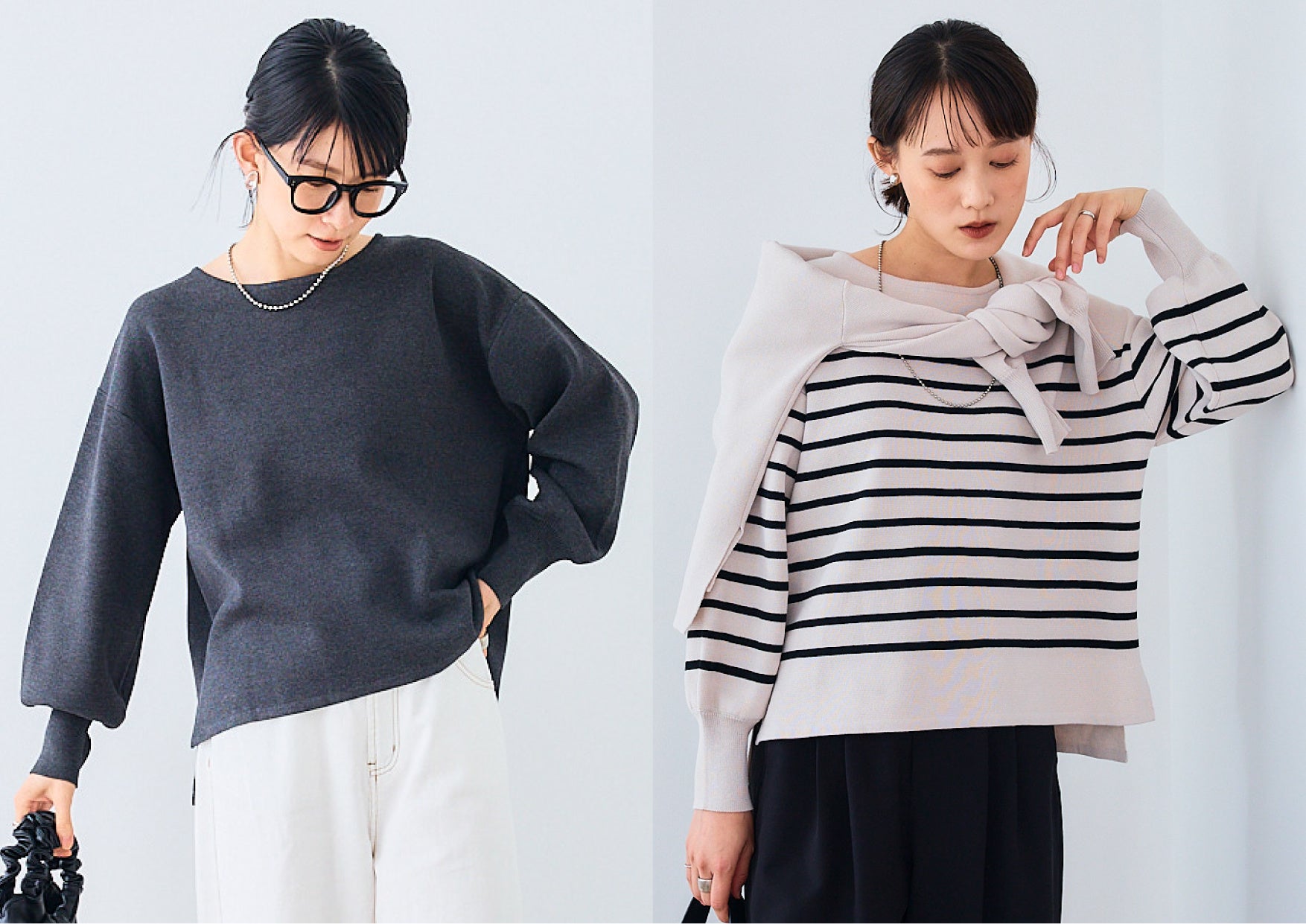 ハリ感はありつつも柔らかい風合いで女性らしさも忘れない1枚。バルーンスリーブがアクセントになり、シンプルながらもサマになるこだわりを感じる相棒ニットです。ベーシックカラーからボーダーまで日常に溶け込むバリエーションも魅力です。