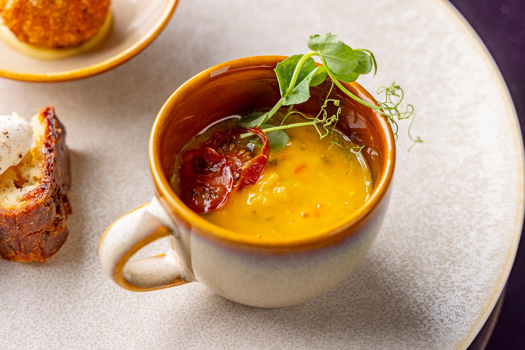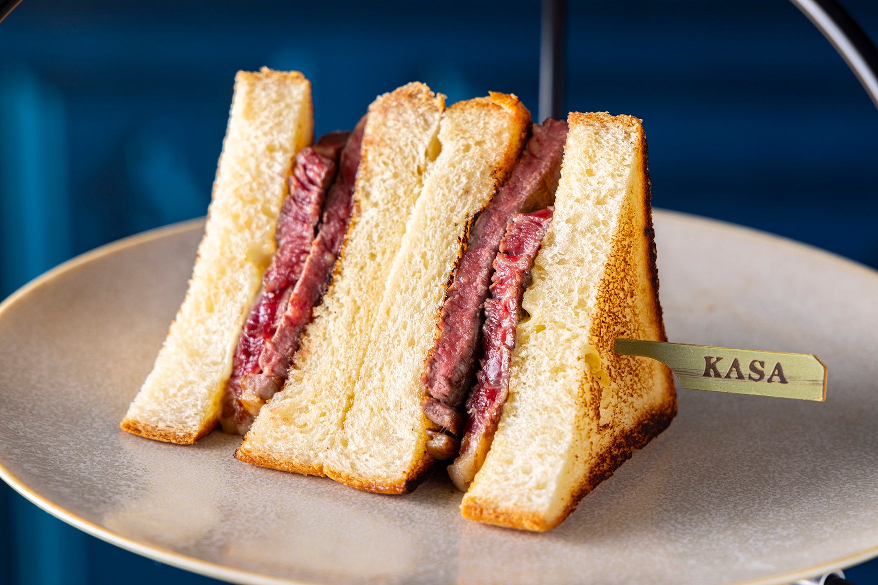 さらに、プルマン東京田町のメインダイニング FUN DINING KASA で好評の「ヴィクトリア州産パスチャーフェッド オコーナーリブアイ ステーキサンドイッチ」もミニサイズになって登場。平飼い卵をたっぷりと使ったリッチなブリオッシュに、牧草飼育牛肉の最高峰 「パスチャーフェッド」を挟んだ一品です。程よく引き締まった赤身のステーキサンドイッチをどうぞご堪能ください。