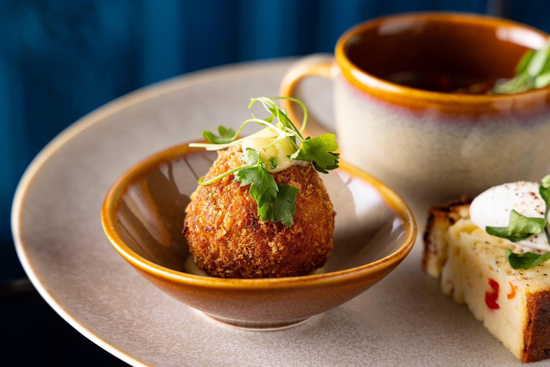 お酒を引き立てるセイボリーには、伝統的なフランスのアペリティフ「クロケット」や、「ポテトテリーヌ」も登場。オーストラリア ビクトリア州公認のラム肉のアンバサダーとしても活動する福田のラムクロケットをお楽しみください。ビーフジャーキーならぬラム肉のうま味がたっぷりとつまったラムジャーキーもおすすめです。