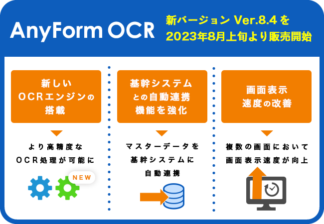 AnyForm OCR(エニーフォームオーシーアール)は2015年のリリース以来、注文書・請求書・伝票の電子データ化ニーズに応える機能強化をしてまいりました。今回の新バージョンでは、より高い生産性を実現するために3つの機能を強化。より高精度なデータ化、シームレスな基幹システム連携、利用者の入力操作性向上によりデータ入力業務の生産性向上を実現します。