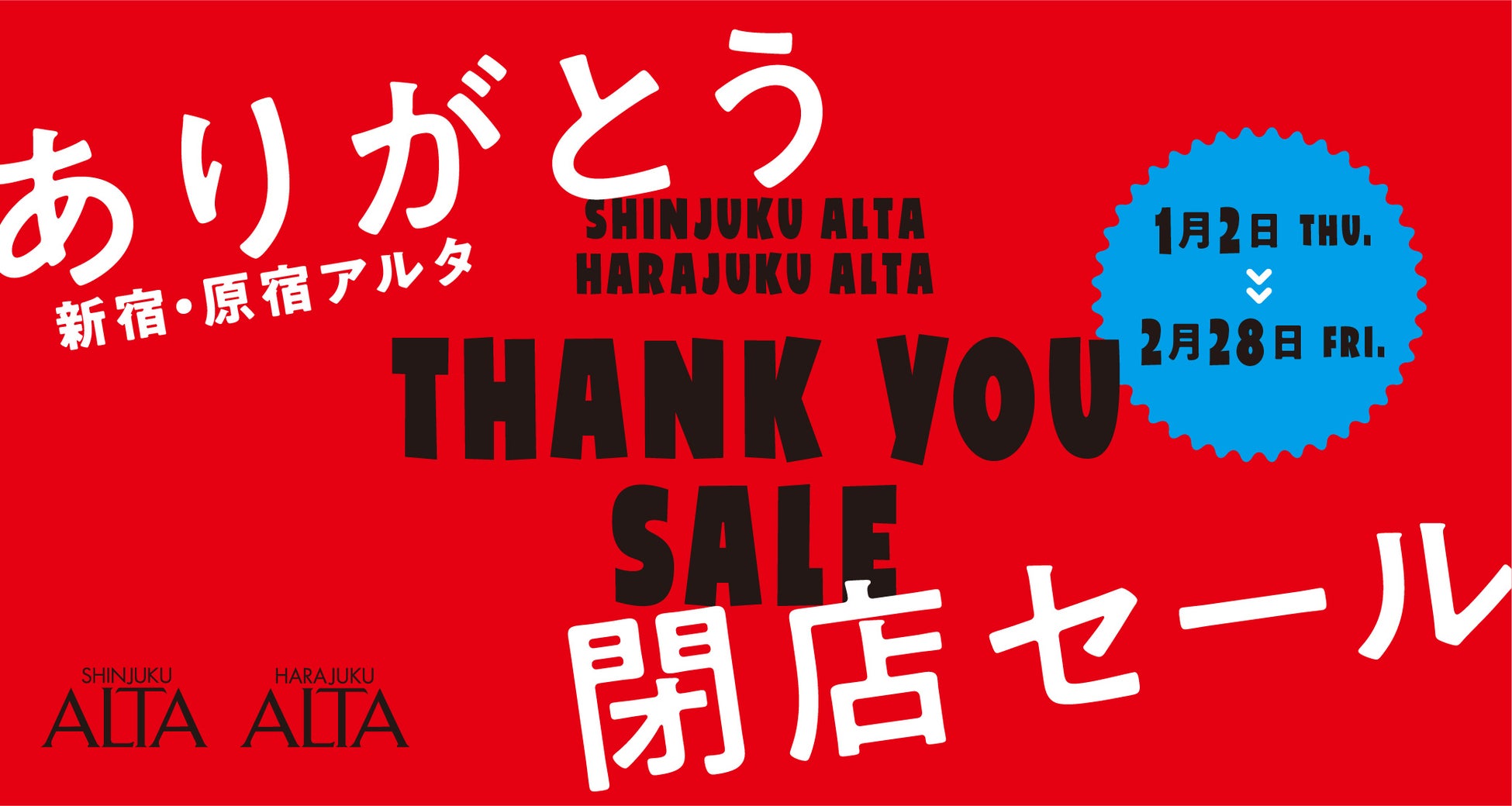 2025年2月28日(金)に営業終了する新宿アルタ・原宿アルタの閉店特設サイト(特設サイト運営事務局:オニオン新聞社)にて、フィナーレまでのイベントを公開いたしました。2025年1月2日(木)からは閉店セールやガラポン抽選会等、皆様にお楽しみいただける様々な企画をご用意しております。