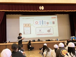 さらに新たな取り組みとして、小学校(新宿区立花園小学校、豊島区立要小学校)で「アルバルク東京×サーモス バスケとSDGs教室」を開催。アカデミーコーチによるバスケットボール教室や当社が取り組んでいるSDGs活動のミニセミナーを行いました。同時に『ステンレス製魔法びん 回収サービス』を開催校で実施しました。本取り組みを通して、今回教室に参加した子どもたちだけでなく、その保護者や学校関係者にも、当社のSDGs活動が広がることを目指しました。