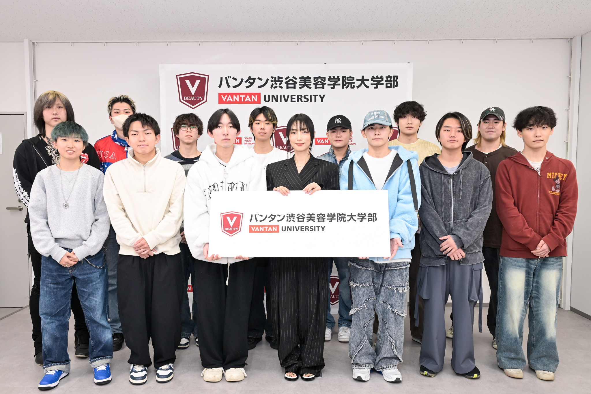 現役クリエイターによる実践的な授業を展開し、「世界で一番、社会に近いスクールを創る」をビジョンとする株式会社バンタンは、実践的な美容の教育を受けながら大学卒業資格も取得できる「バンタン渋谷美容学院 大学部※1」(所在地:東京都渋谷区 開校:2024年4月)を運営しています。美容業界において男性市場が急成長を遂げる中、2026年4月入学生より男子生徒の受け入れを本格的に開始いたします。その発表を記念し、2025年11月5日、名誉学院長のMEGUMIさんによる、美容や美容業界での仕事に関心がある男性に向けて、特別授業を実施しました。