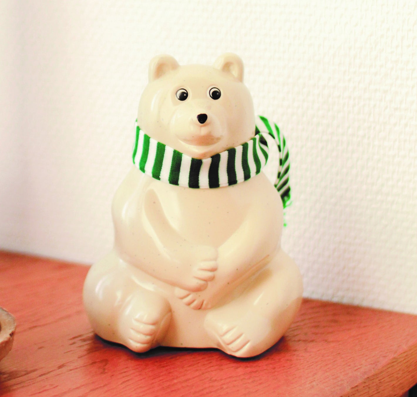 フィンランドの銀行のノベルティを復刻した貯金箱。2023年バージョンのグリーンのマフラー付です。