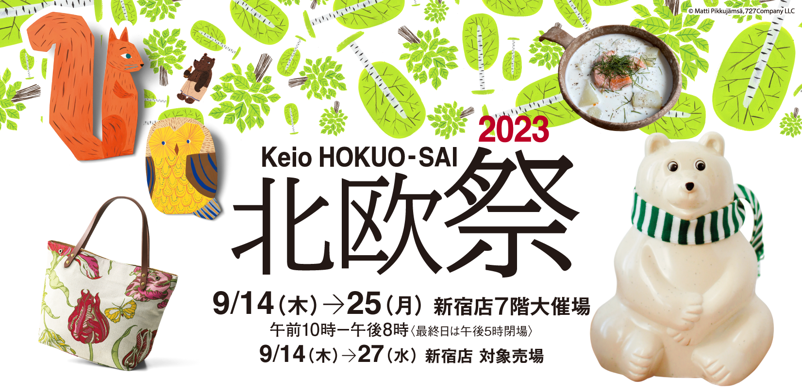 株式会社京王百貨店(本社:東京都新宿区、社長:仲岡一紀)新宿店では、9月14日(木)~27日(水)の期間、“北欧”を切り口にしたグッズ、グルメを新宿店各階で展開する「北欧祭2023」を開催します。
