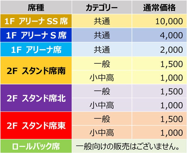 ※ロールバック席はスポンサー席、アカデミー席となります。一般販売はございません。
