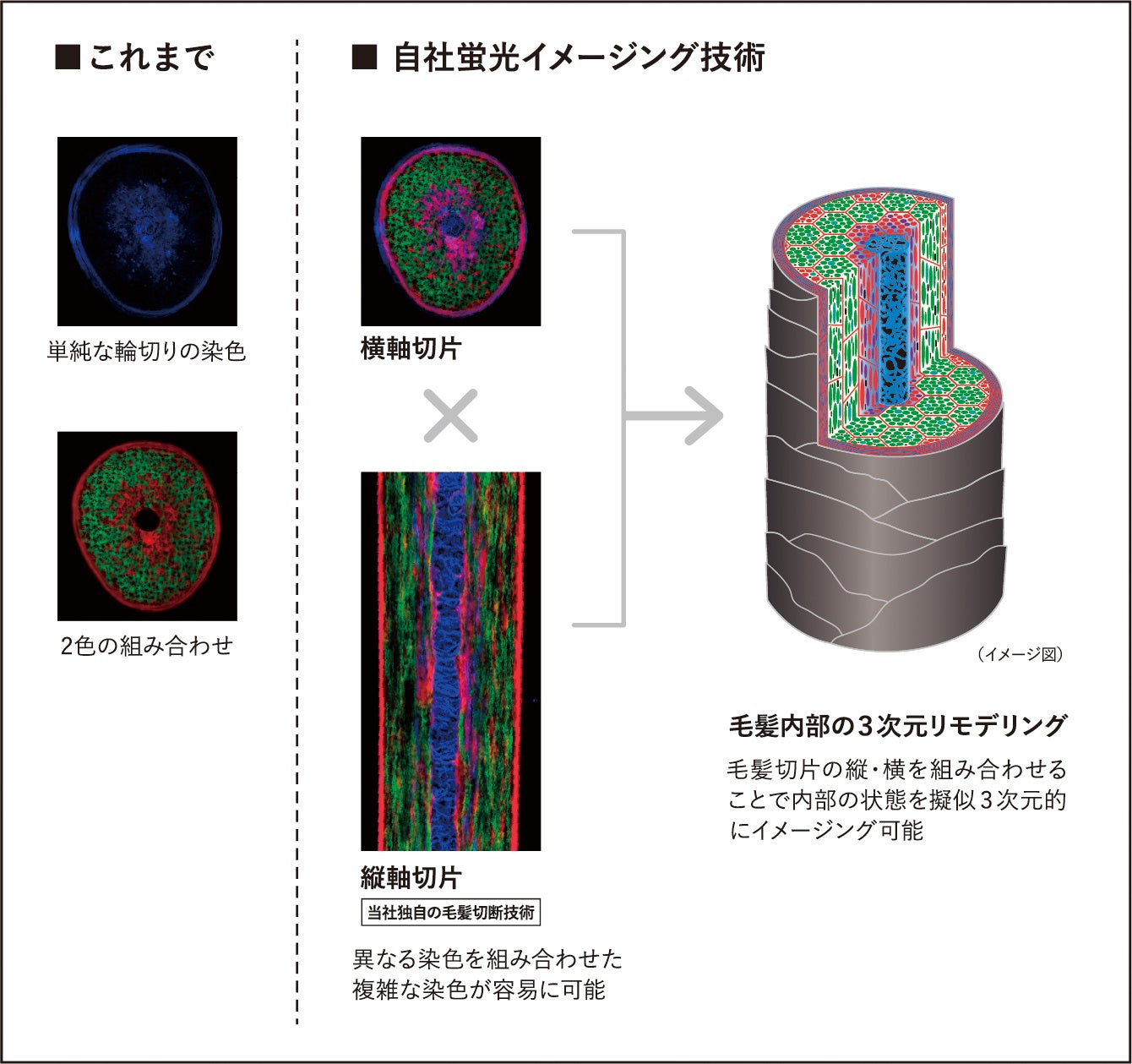独自の蛍光イメージング技術により毛髪内部の多角的な見える化を実現