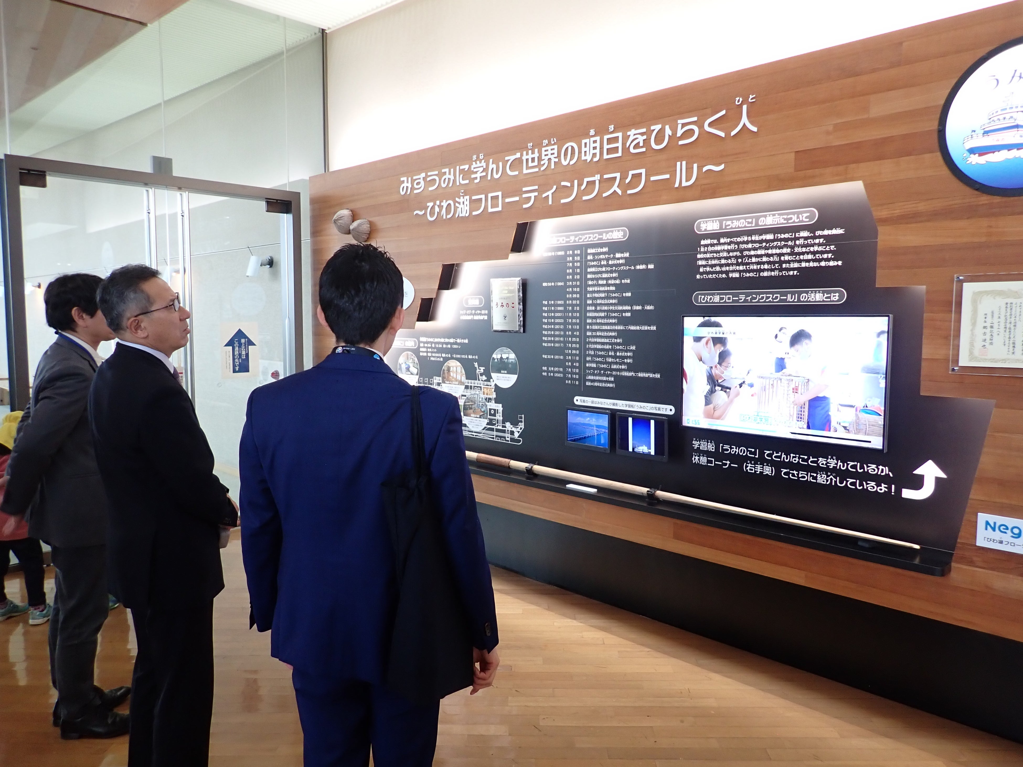 大使は3月3日に滋賀県へ来県され、ニカラグアで実施されている環境教育プログラムUMINOKOのモデルとなった、滋賀県のフローティングスクール「うみのこ」の船内を大津港で視察し、4日には琵琶湖博物館において「うみのこ」の展示や、博物館の各展示を視察されました。